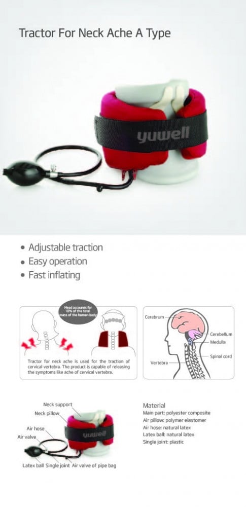 مصمم لعلاج ومنع كسر الرقبة وخلع الفقرات. نتوء القرص الفقري وتمدد ورسم مفرطين. يمكن أن يدعم رأس المريض بشكل فعال حسب ضغط الهواء المناسب ، بحيث يمكنه تخفيف العبء عن الرقبة والكتف. كما أن لديها وظيفة العلاج بالأشعة تحت الحمراء السحرية لتبديد الألم (النوع ب).